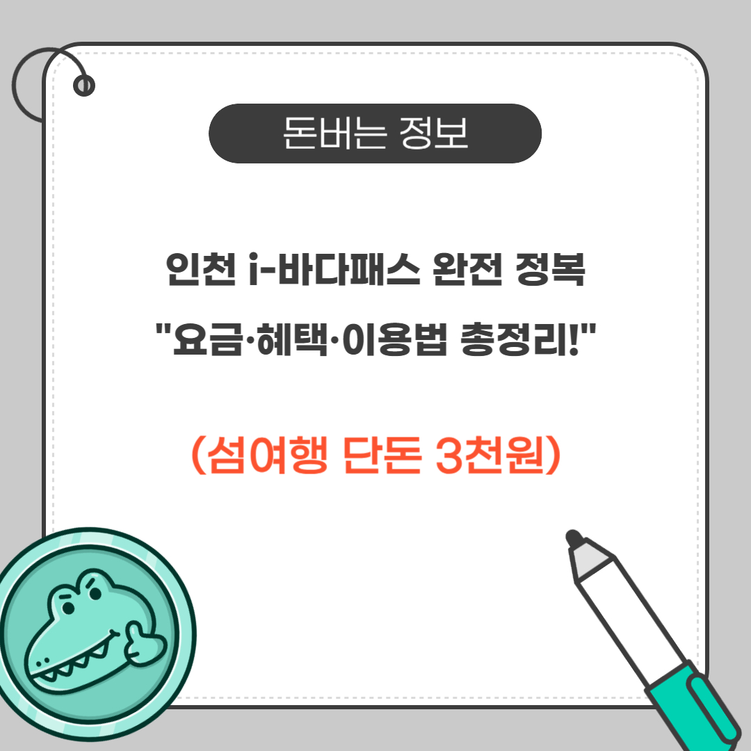 2025년부터 인천시는 ‘보물섬 프로젝트’의 일환으로 연안여객선 요금을 왕복 3,000원으로 대폭 낮춘 인천 i-바다패스 정책을 시행합니다! 이제 누구나 부담 없이 인천의 아름다운 섬들을 여행할 수 있게 되었는데요. ✨ 오늘은 i-바다패스의 모든 것을 쉽고 알차게 알려드립니다.