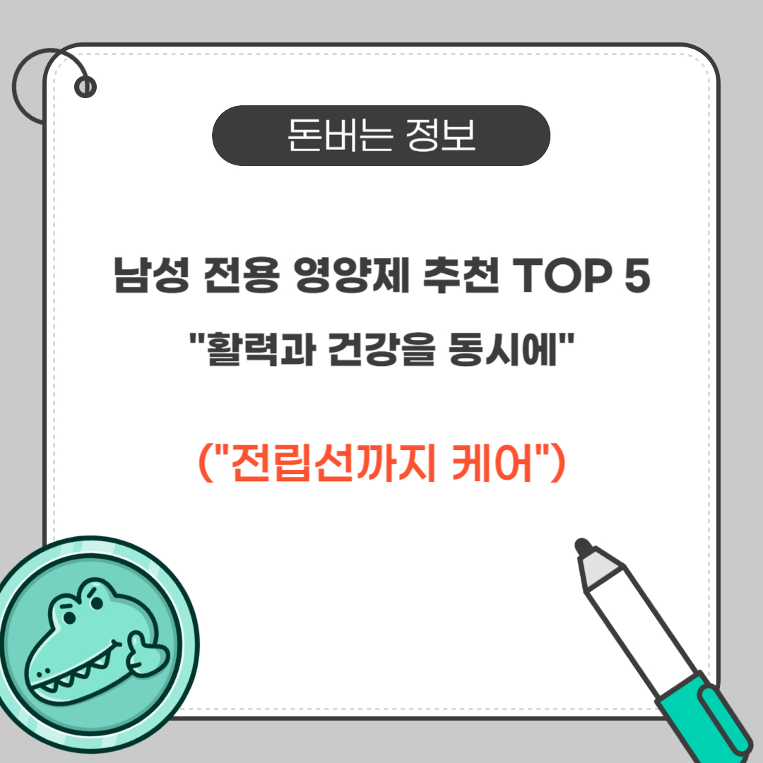 오늘은 주요 브랜드의 남성 전용 영양제 TOP 5를 효능, 성분, 가격, 주의사항과 함께 비교해드립니다.