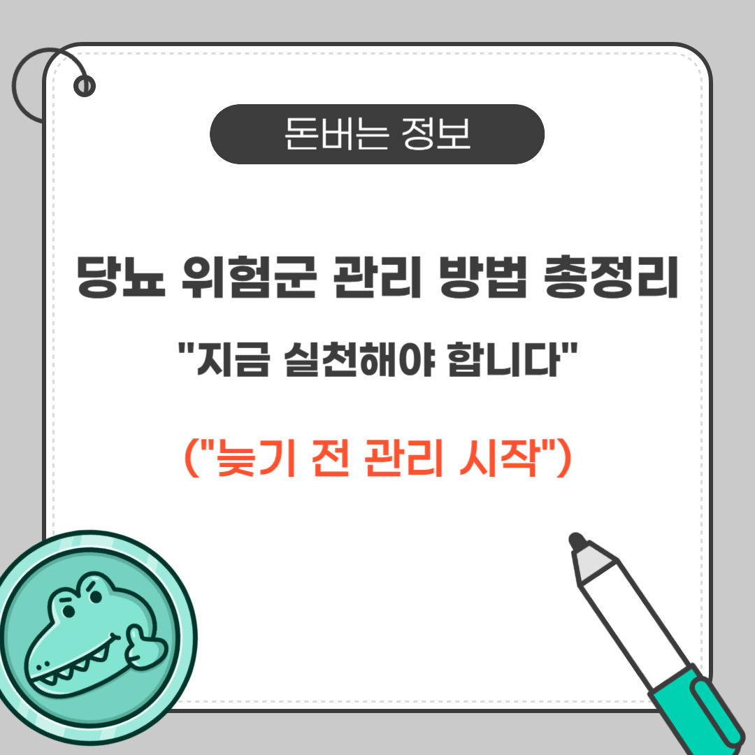 당뇨병 위험군은 아직 되돌릴 수 있는 시기입니다. 생활습관을 하나씩 바꾸며 매일 1%씩 개선하는 습관을 시작해보세요. 지금 실천하지 않으면, 내일은 치료가 필요할 수 있습니다.