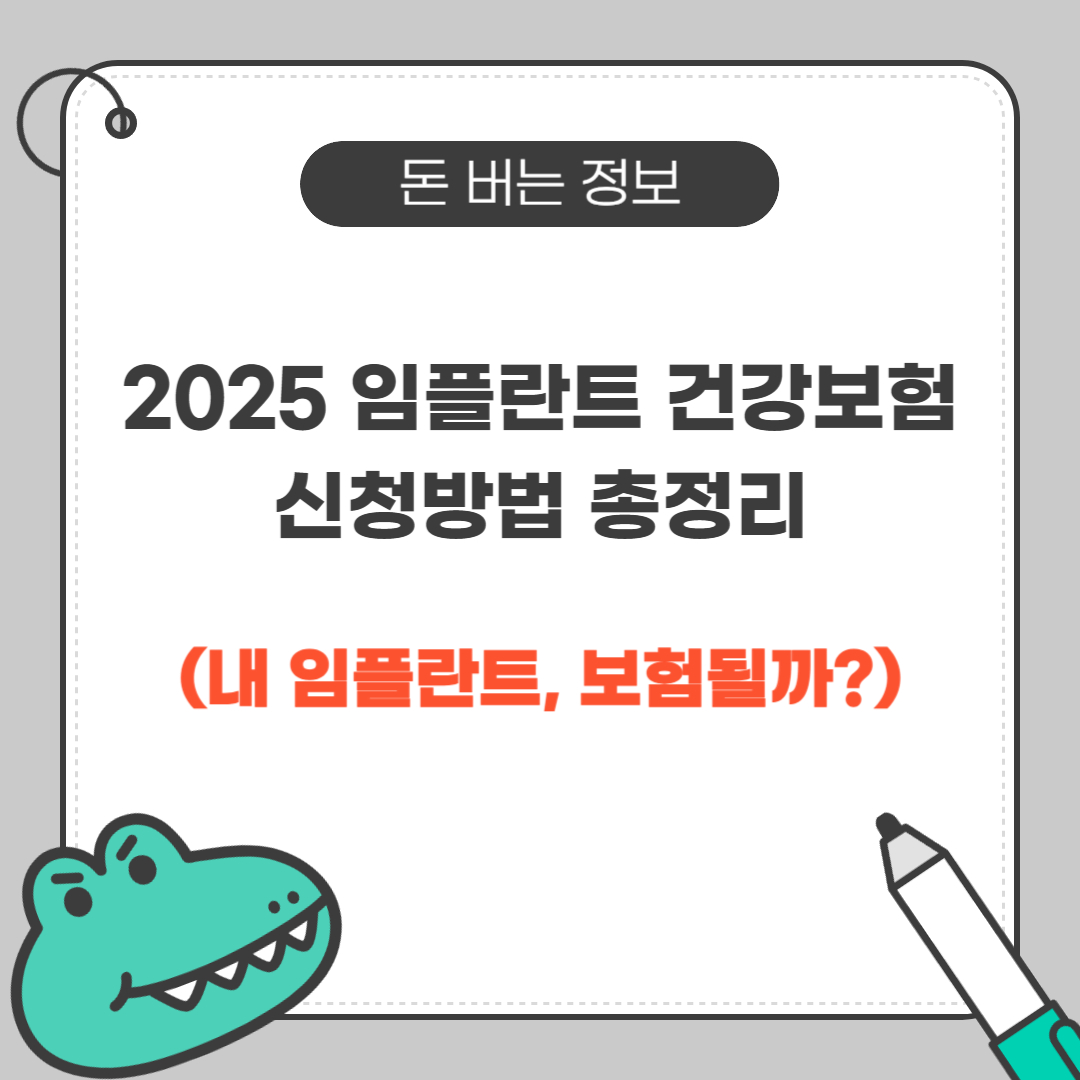 2025년 임플란트 건강보험은 만 65세 이상 국민에게 실질적인 혜택을 제공하는 제도입니다. 치과 임플란트 치료가 필요하신 분이라면 자격 조건과 절차를 미리 확인하여 경제적 부담을 줄이고, 건강한 삶을 유지하시기 바랍니다.